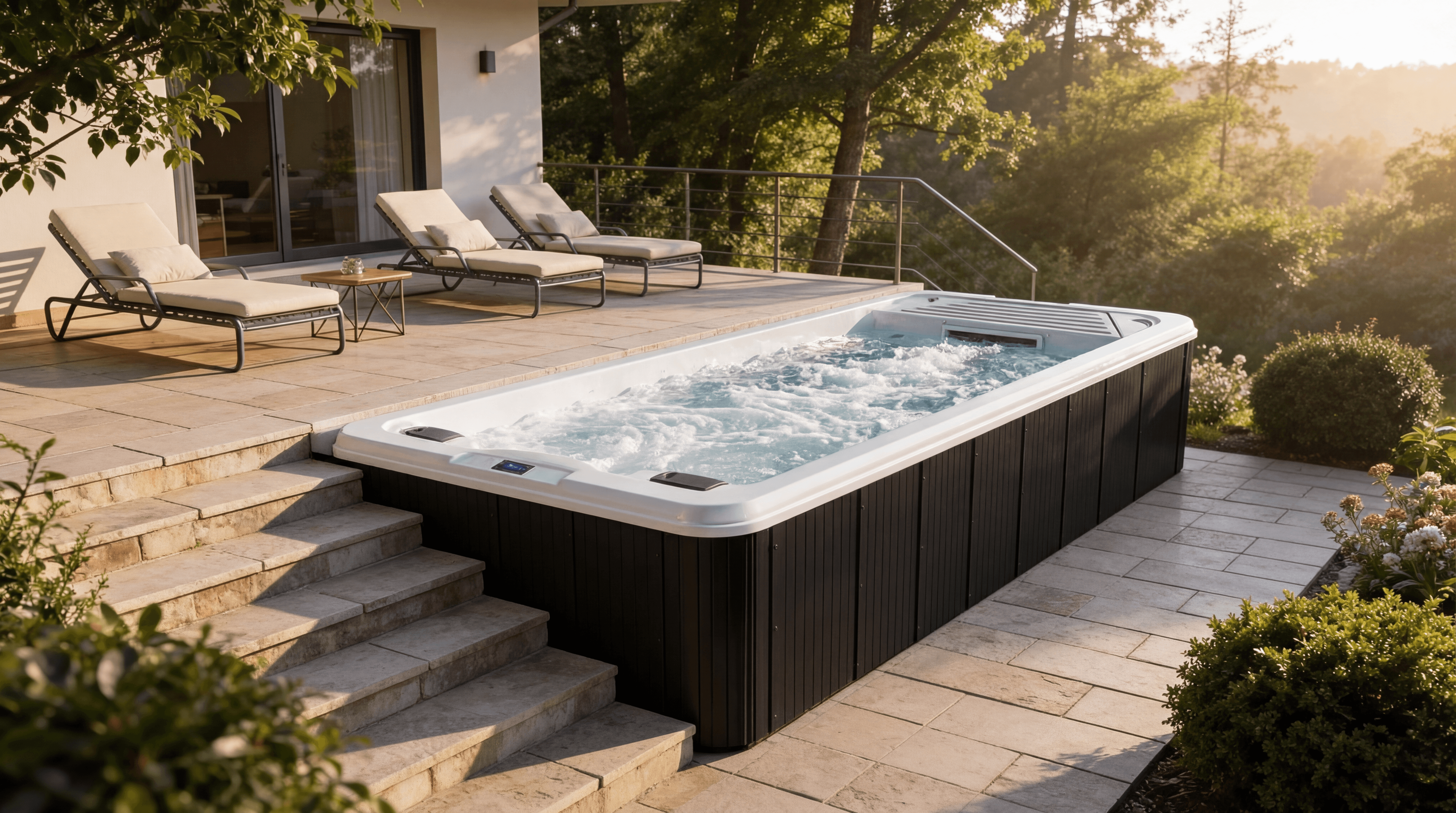 The one that does it all. Swim laps before breakfast, let the kids loose after school — all without leaving your backyard. At 16' - 32' feet long and nearly 5 feet deep, there's room to actually swim, not just splash. An adjustable propulsion system that lets you dial the current from a lazy float to a serious workout, so it works whether you're training or just cooling off on a Saturday.